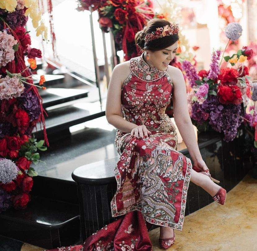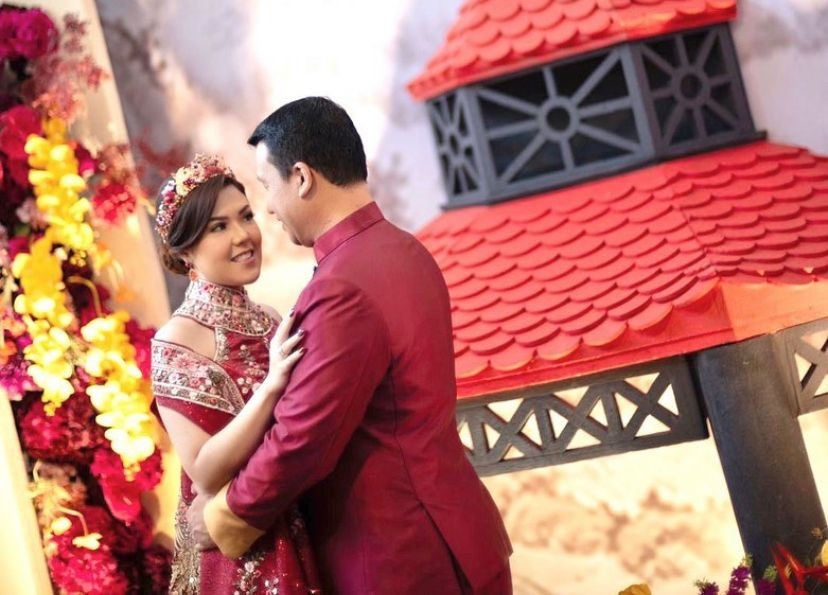 Tina dan calon suami tampak melaksanakan sangjit atau ritual pertunangan dalam tradisi Tionghoa-Indonesia. Penyanyi sekaligus politisi itu tampil cantik dengan pakaian bernuansa merah. Senada dengan Tina, sang calon pengantin pria juga tampil mengenakan setelan jas merah.