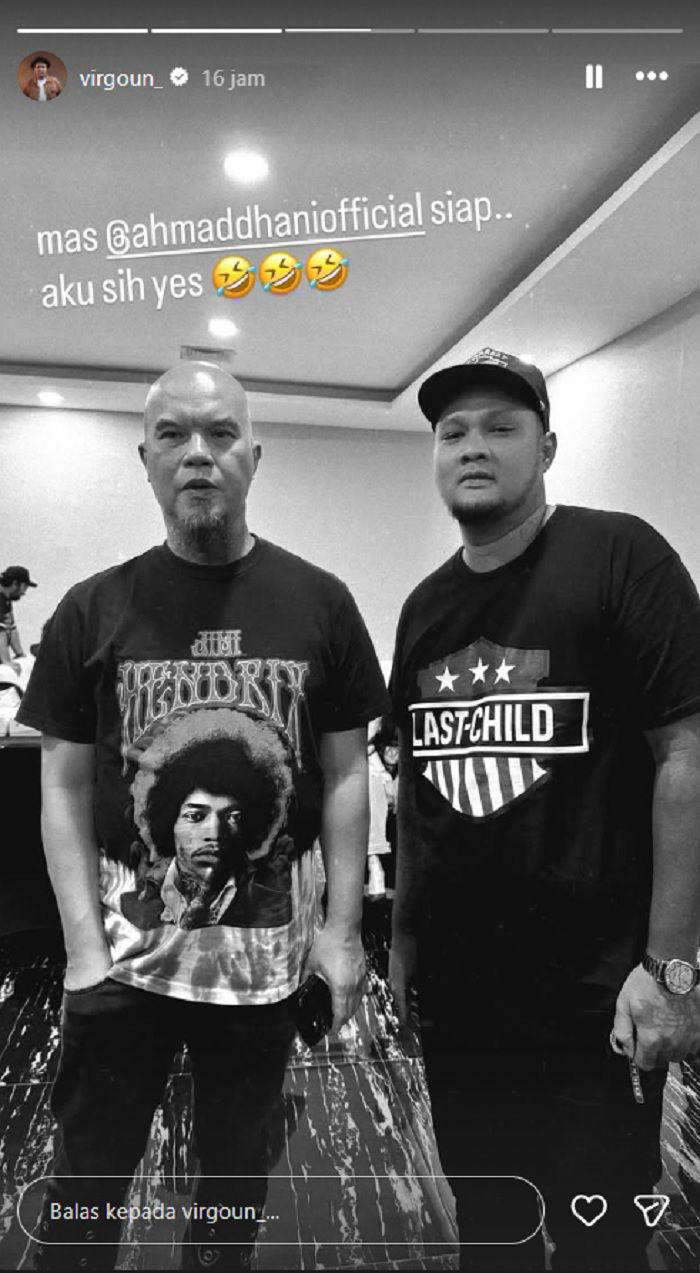 "Mas @ahmaddhaniofficial siap, aku sih yes," tulis Virgoun.