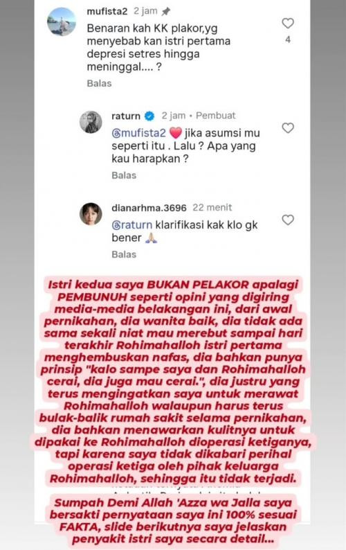 Pertanyaan itu kemudian dijawab Ratu Rizky Nabila. Meski telah mengklarifikasinya, namun hal tersebut tak cukup. Hingga akhirnya Pesulap Merah harus turun tangan membela istrinya tersebut. Bukan hanya soal tudingan pelakor, Pesulap Merah juga menegaskan bahwa pernikahan mereka bukan alasan istri pertamanya, Tika Mega Lestari, meninggal dunia.