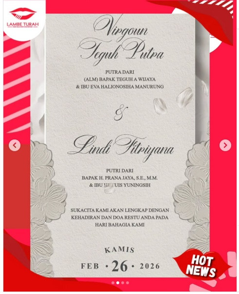 Berdasarkan undangan yang beredar belakangan ini, diketahui bahwa Virgoun dan Lindi akan menikah pada 26 Februari 2026 mendatang. Terkait kabar tersebut, Kepala Kantor Urusan Agama (KUA) Kecamatan Kelapa Dua, Tangerang, Dani Nur Ali, memberikan klarifikasi. Dani membenarkan tentang berita bahagia tersebut.