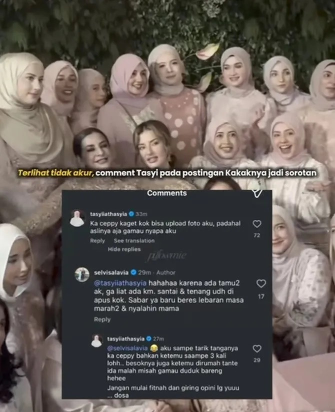 Rupanya komentar dari Tasyi itu ditanggai oleh Ceppy. Dia kemudian menjelaskan alasannya mengunggah foto itu karena ada tamu yang tak melihat kehadirannya di momen kumpul keluarga tersebut.