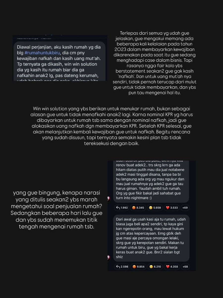 "Rumah itu dibeli di momen sebelum anak pertama gue lahir dengan harapan rumah tersebut menjadi awal baik bagi keluarga kecil gue, dan anak-anak bisa tumbuh kembang dengan baik didalam rumah itu," tulis Okin.