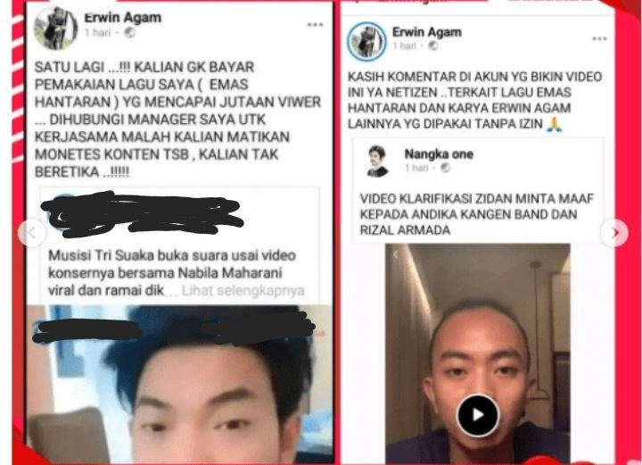 Kasus parodi video Andika Kangen Band oleh Tri Suaka dan Zinidin Zidan hingga kini berbuntut panjang. Bagaimana tidak, polemik tersebut kian memanjang saat komposer lagu kondang, Erwin Agam melayangkan somasi pada Tri Suaka dan Zidan karena telah men-cover sekaligus memonetisasi lagu 'Emas Hantaran' karyanya.