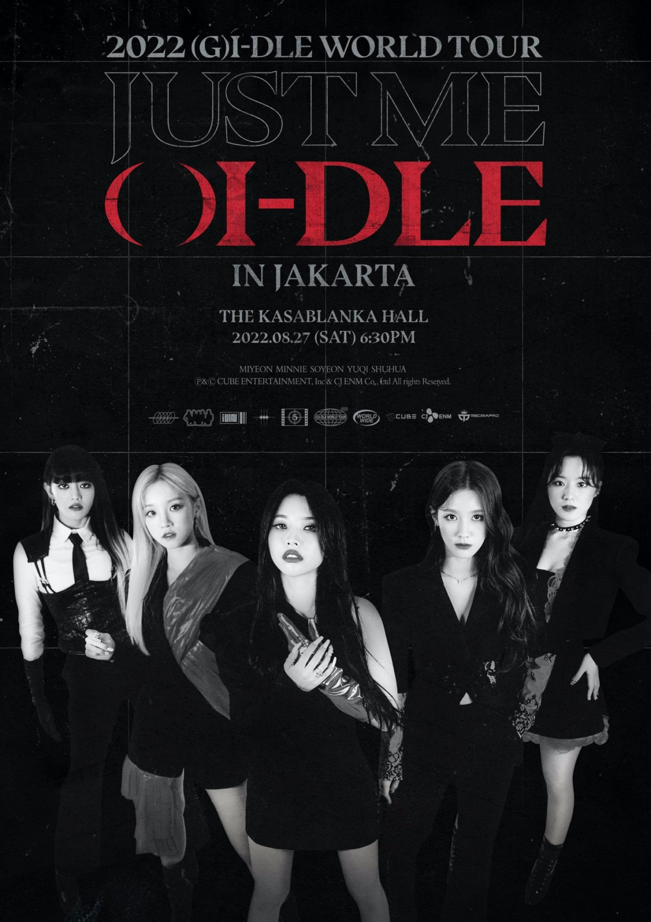 "[PENGUMUMAN] 2022 (G)I-DLE WORLD TOUR [JUST ME ( )I-DLE] DI JAKARTA, Sabtu, 27 Agustus 2022 di The Kasablanka Hall. Neverland, kami sangat senang memiliki (G)I-DLE bersama kami di bulan Agustus ini. Nantikan informasi tiketnya!," tulis promotor Mecima Pro, selaku promotor.