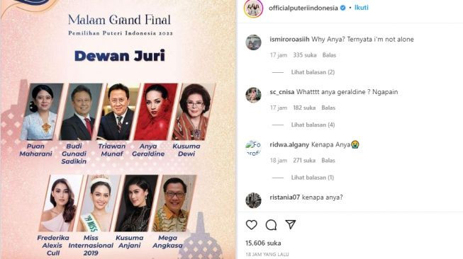 Melihat nama Anya Geraldine disebutkan menjadi salah satu juri kompetisi kecantiakan terbesar Indonesia itu, netizen justru terheran-heran dan mempertanyakan alasan pemilihan sang selebgram menjadi salah satu juri.