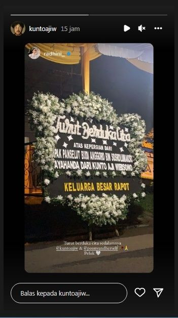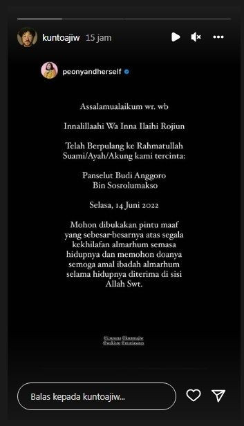 "Innalillahi wa innailaihi rojiun. Mas Kun, ikut berbelasungkawa semoga