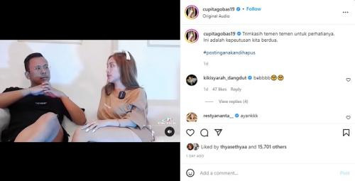 "Ini adalah keputusan kami berdua," tulis Cupi Cupita.
