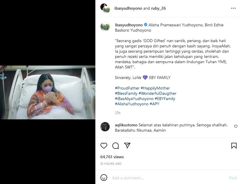 Melalui media sosial pribadinya, Ibas pun mengumumkan kelahiran putri kecilnya itu.