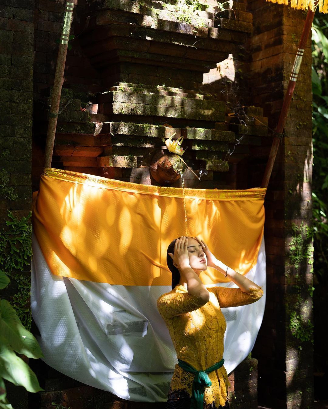 Dalam foto yang diunggah, terlihat Anya mengenakan kebaya berwarna mustard yang dipadu padankan dengan rok batik. Kemudian dia menambahkan kain hijau yang dililitkan di pinggangnya. Terlihat dirinya juga dibantu oleh salah satu warga Bali dalan jalani proses melukatnya.