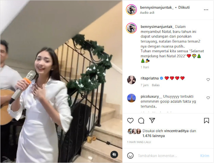 "Dalam menyambut Natal, baru tahun ini dapat undangan dari ponakan tersayang, natalan Bersama teman2 nya dengan nuansa putih.. Tuhan menyertai kita semua 'Selamat menjelang hari Natal 2022'," tulis Benny Simanjuntak.