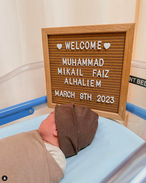 Dari foto yang diunggah terlihat bayi mungil itu diberi nama Muhammad Mikail Faiz Alhaliem. Tak lupa, Alvin juga meminta doa-doa baik dari para pengikutnya untuk sang buah hati.