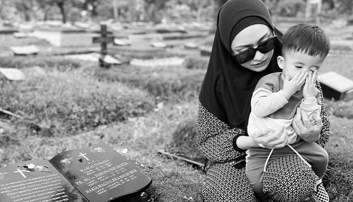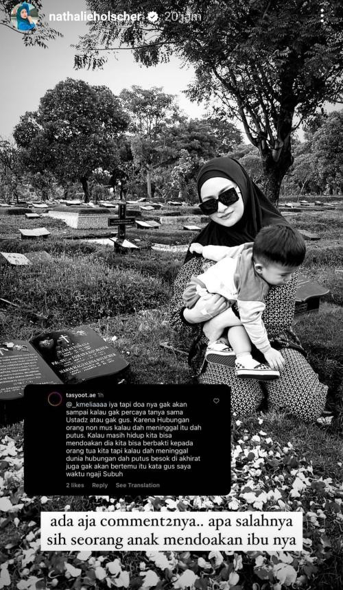 Dari unggahan foto yang diunggah Nathalie Holscher, terlihat mantan istri Sule ini datang bersama. putranya putra semata wayangnya Adzam Adriansyah Sutisna. Dalam foto dengan background hitam putih tersebut, Nathalie tampak berdoa di samping makam ibunya.
