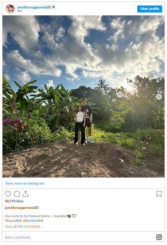 "Our soon to be forever home + bayi kicilâ¨ð¤ Masyaallah alhamdulillah," tulis Jennifer Coppen pada keterangan unggahannya.