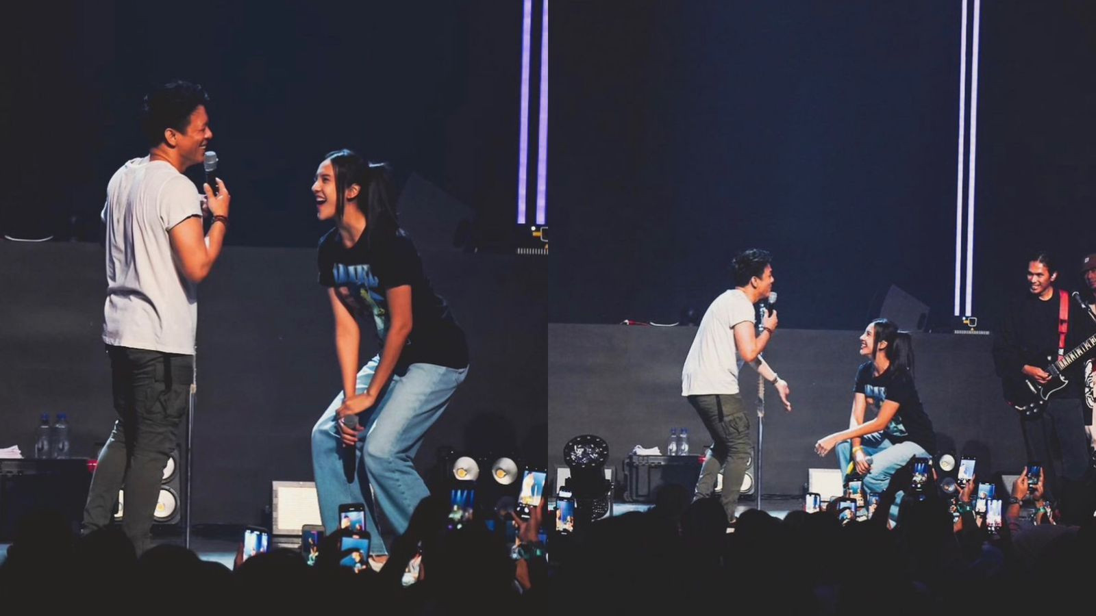 Tak hanya sekadar menjadi penonton, kehadiran Anya lantas membuat Ariel sengaja memanggil Anya agar naik ke atas panggung. Sambil malu-malu, Anya pun naik ke atas panggung sembari mengenakan kaos hitam bertulis dan bergambarkan 'ARIEL'.