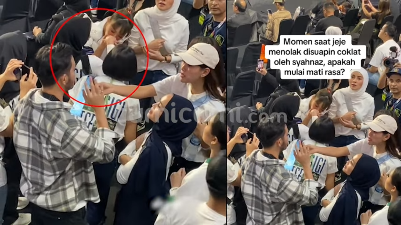 tertangkap momen saat Jeje menolak suapan cokelat dari Syahnaz saat di acara