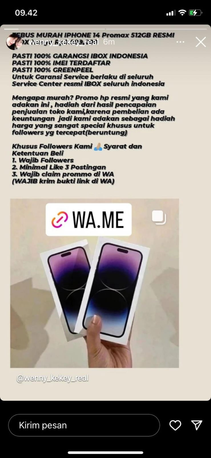 Kerabat Wenny Ariani yang lain juga memberi peringatan agar netizen tidak langsung percaya dengan unggahan dari akun yang menjual Iphone tersebut.