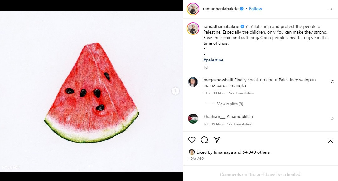 Israel, hingga membagikan emoji semangka yang menjadi simbol perjuangan warga Palestina