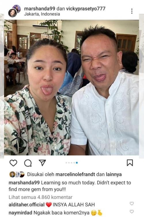 Melihat ungkapan dari Marshanda itu, Vicky Prasetyo langsung gerak cepat meresponnya melalui kolom komentar.