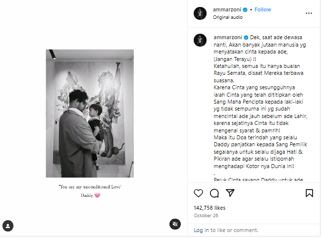 Peluk Cinta sayang Daddy untuk ade @amalaputisabai ð©·" tulis Ammar di unggahan