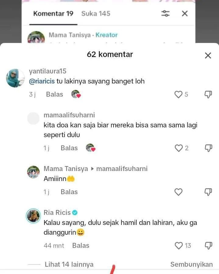 Komentar ini keluar saat akun Tiktok bernama @mamatanisya mengunggah kembali potret keharmonisan Ria Ricis bersama Teuku Ryan di acara ulang tahun Moana. Melihat unggahan tersebut, salah satu netizen pun menandai akun Ria Ricis agar ia mengingat kembali besarnya kasih sayang yang diberikan sang suami.