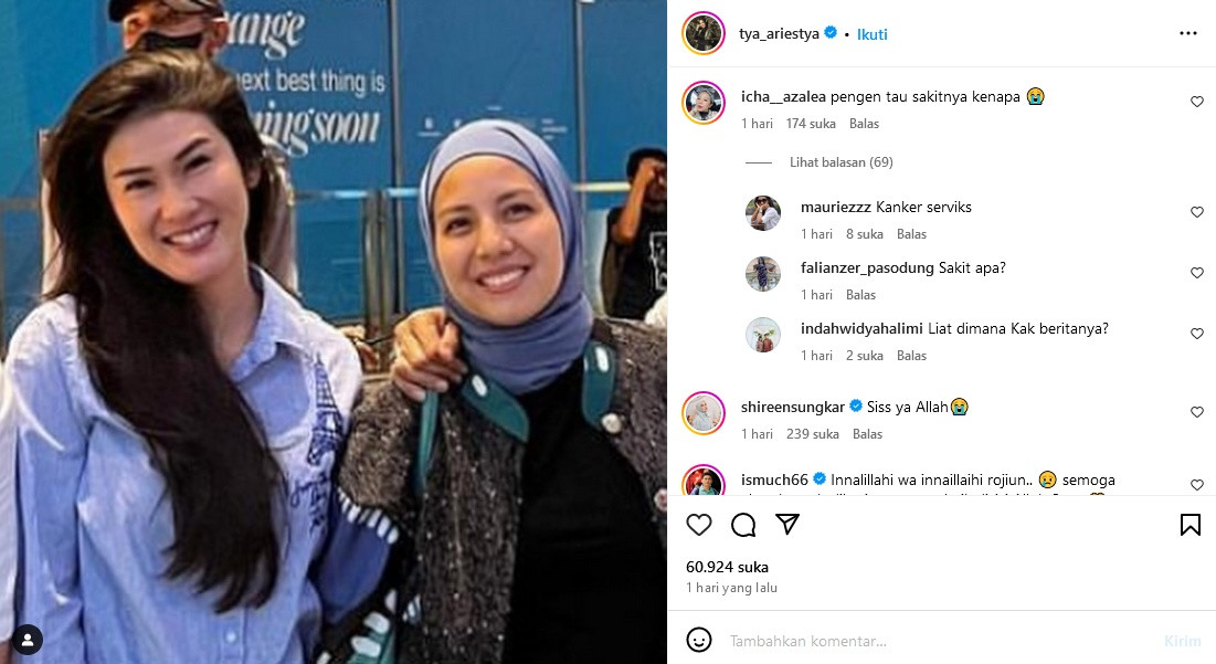 "Pengin tahu sakitnya kenapa," tanya seorang netizen di kolom komentar unggahan foto Tya bersama Stevie.