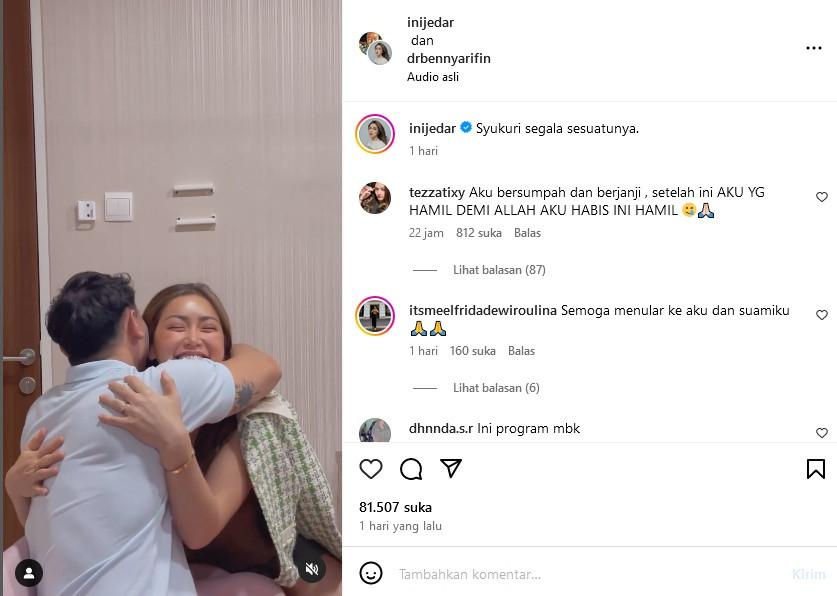 Dalam momen tersebut, dokter pun mengingatkan agar Jedar dan suami bekerjasama untuk menjaga calon buah hati mereka. Termasuk, menjaga kondisi wanita berusia 36 tahun tersebut sampai proses persalinan nanti.