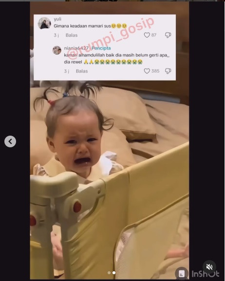 "Kamari Alhamdulillah baik, dia masih belum ngerti apa tapi dia rewel," kata Nia di kolom komentar unggahannya di Tiktok @niania6427, Jumat (19/7/2024).