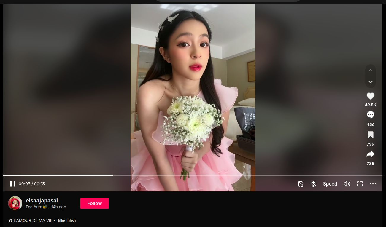 Dalam unggahan di media sosial miliknya, Eca Aura mengunggah sebuah video di akun TikTok-nya yang dinilai sebagai ungkapan perasaan galaunya. Terlihat Eca membawa buket bunga putih sambil lipsync lagu milik Billie Eilish yang berjudul L'Amour De Ma Vie.