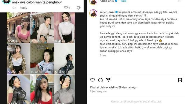 "Lalu ada yang bilang ini bukan account asli, foto asli banyak deh yang bantu comment, tapi di sini saya upload berdasarkan ketikkan ngatain anak saya dan foto-foto yang ada di feed-nya," ungkapnya.