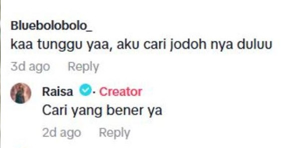 Menariknya, komentar itu dibalas oleh Raisa. Ibu satu anak ini menuliskan pesan untuk penggemarnya itu agar mencari jodoh yang benar.
