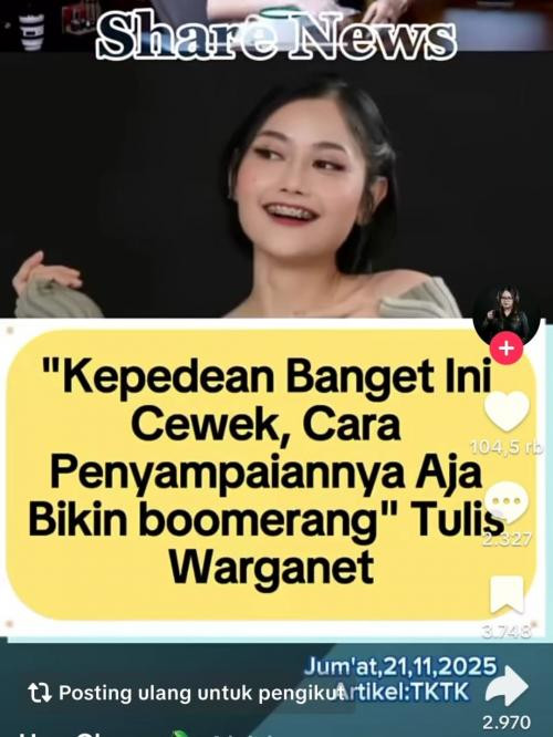 Dalam postingan berbeda, akun tersebut juga memperlihatkan salah satu komentar netizen yang menuliskan, "Kepedean banget ini cewek, cara penyampaiannya saja bikin boomerang."