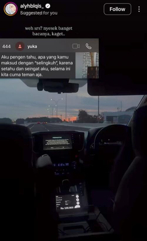 Hal itu terlihat dari unggahan selebgram yang akrab disapa Aya itu lewat Instagram. Dalam unggahannya, Aya membagikan potongan chat dari Yuka yang tak tampak dituding berselingkuh.