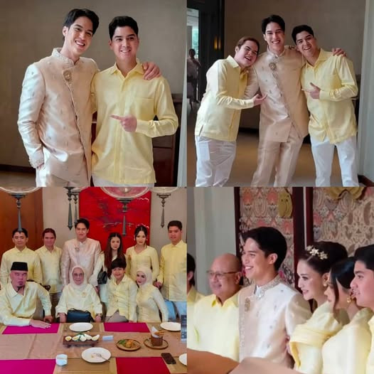 Mengintip akun Instagram pembasmii.kehaluan, tampak keluarga Ahmad Dhani duduk di kursi yang menghadap meja. Menariknya, mereka semua kompak mengenakan pakaian berwarna kuning muda. Sementara, busana yang dikenakan El Rumi sedikit berbeda dibandingkan anggota keluarga laiannya.