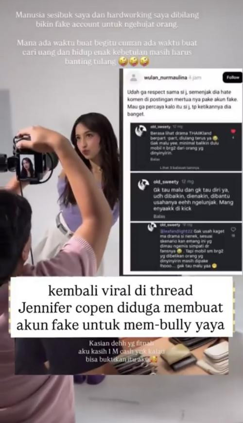"Manusia sesibuk dan se-hardworking saya dibilang bikin akun fake untuk menghujat orang. Mana ada waktu untuk begituan," ujar Jennifer Coppen dalam unggahan itu.