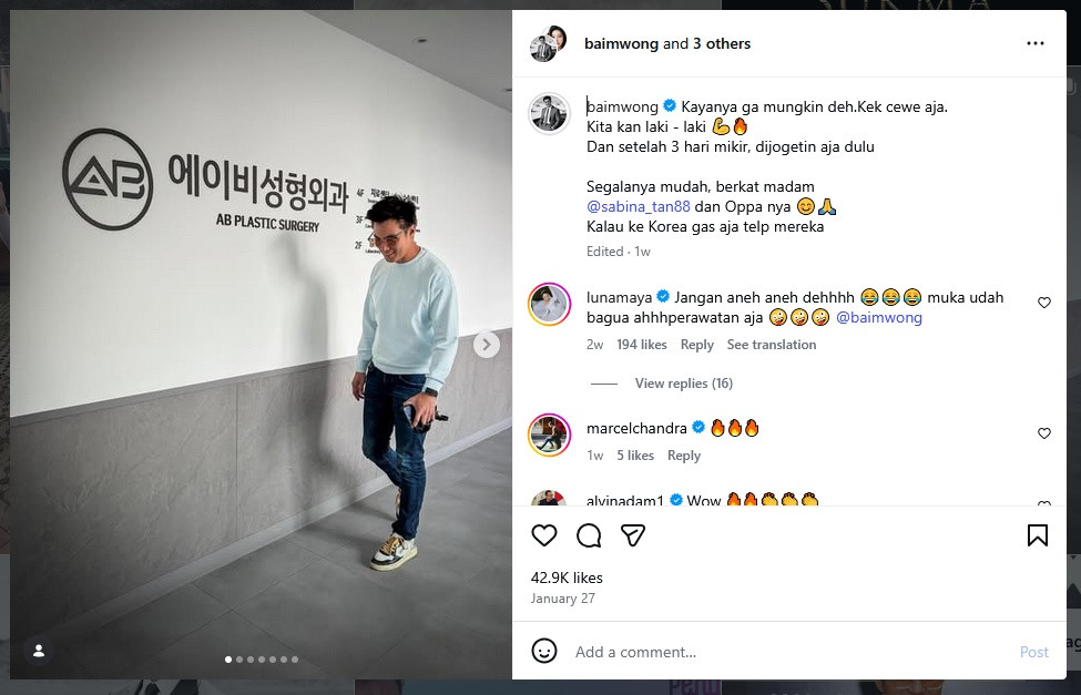 Baim Wong belum lama ini menuai sorotan publik usai diduga baru menjalani operasi plastik (oplas) di Korea Selatan. Hal tersebut lantaran unggahan ayah dua anak itu di sebuah klinik kecantikan di Korea beberapa waktu yang lalu.