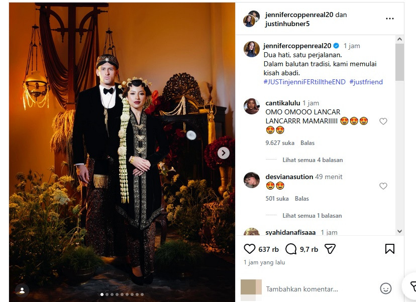 "Dua hati, satu perjalanan. Dalam balutan tradisi, kami memulai kisah abadi," tulis Jennifer Coppen.