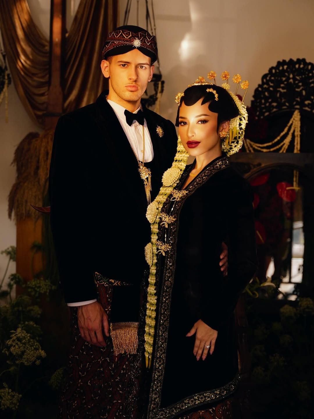 Dengan balutan busana adat Jawa, baik Jennifer maupun Justin seolah mampu menciptakan atmosfer romantis yang kuat. Bukan hanya pilihan busana adat Jawa yang elegan, latar belakang yang mendukung juga menjadikan hasil foto mereka tampak begitu berkelas.
