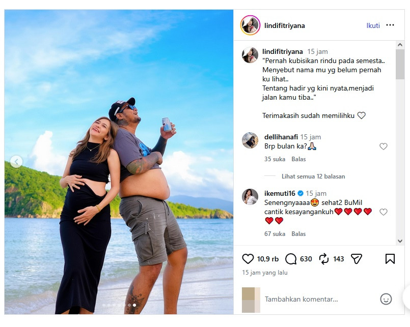 Unggahan itu pun langsung ramai menuai komentar warganet. Bahkan ada yang menyinggung soal pernyataan mantan kekasih Virgoun, Luna Alhamdy Putri atau Una yang sebelumnya menduga Lindi hamil sebelum menikah.