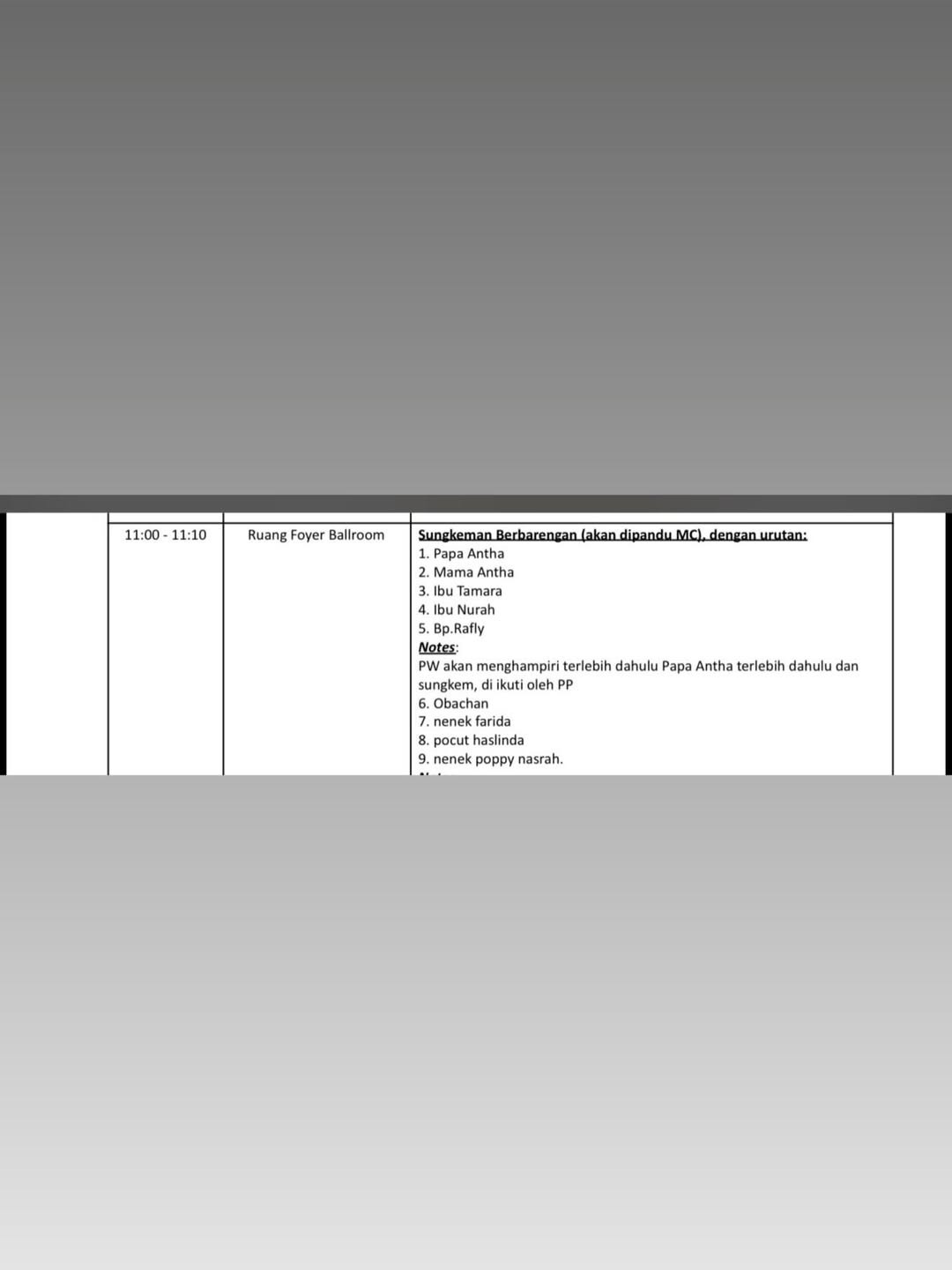 Rassya juga sempat mengunggah bukti yang menunjukkan bahwa ibunya telah direncanakan untuk hadir sebagai bagian penting dalam prosesi. Bahkan, dalam potongan rundown yang diunggah, nama Tamara tercantum sebagai salah satu pihak utama dalam prosesi sungkeman, bahkan berada di urutan awal. Tamara juga dijadwalkan berjalan bersama keluarga inti saat resepsi.
