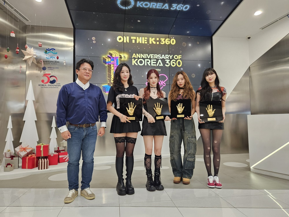 Ditemani Direktur Regional KOCCA Indonesia, Kim Young Soo, keempat anggota Apink juga melakukan peletakan handprinting seperti anggota MIRAE yang juga turut hadir dalam acara ON THE K:360 '1st ANNIVERSARRY of KOREA 360'.