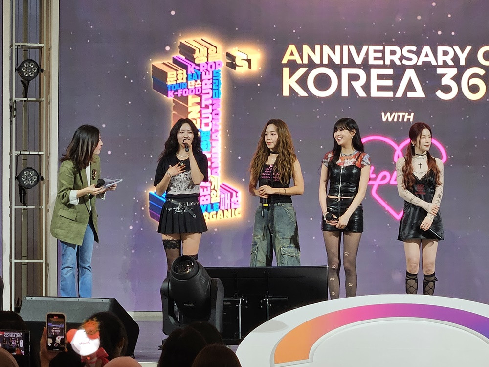 "Sebenarnya Eunji juga pengin banget datang ke sini. Lain kali kami akan datang lengkap bersam Eunji, ya," kata Hayoung.