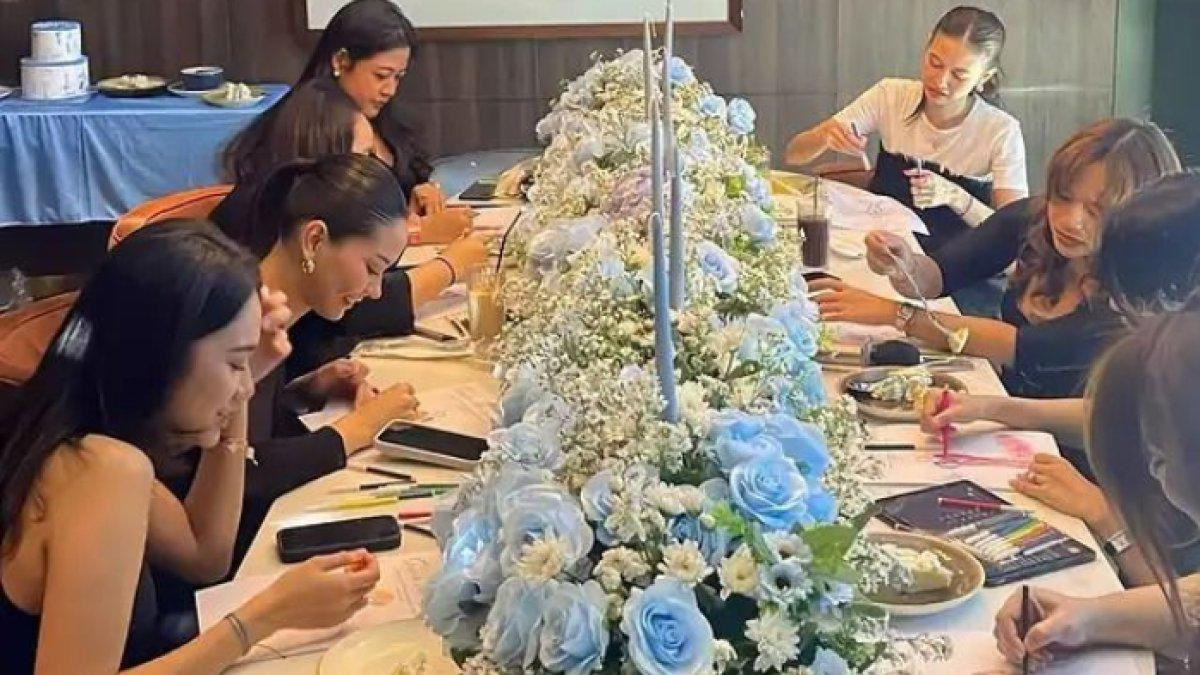 dekorasi bridal shower Aaliyah Massaid. Tampak meja makan dalam acara juga dihias