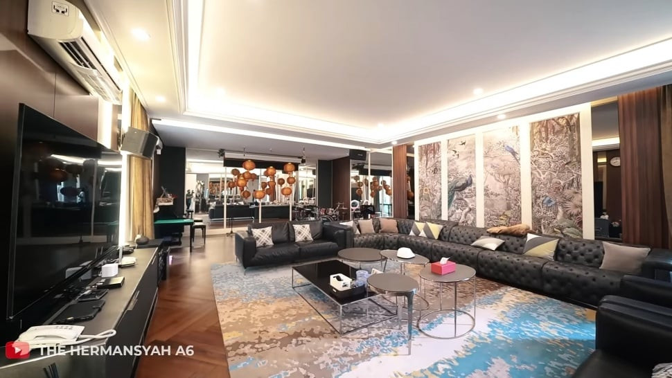 5. Bagian ternyaman di rumah Helena Lim terdapat pada ruang santai. Terlihat ada sofa hitam besar dan panjang. Terdapat juga televisi besar dilengkapi audio canggih. Selain itu, terdapat alat musik seperti drum dan piano untuk dimainkan anggota keluarga.