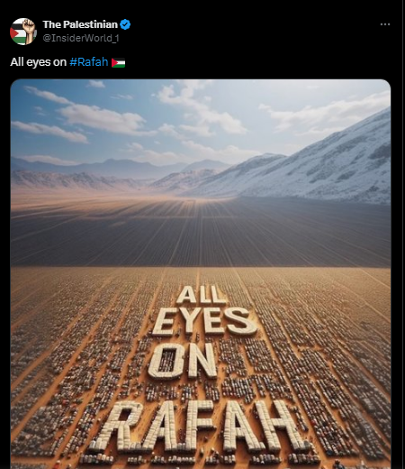 Eyes on Rafah yang diserukan oleh para pengguna. Bahkan gambar tersebut sudah